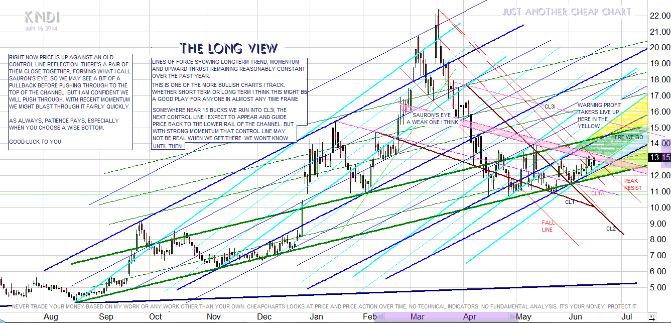 KNDI – THE LONG VIEW – 61614 Posted June 17, 2014 by Jon in category "KNDI Post navigation MNKD – PREDAWN EDITION – TWEAKS TO FRIDAY’S CHART – 61614 RGSE – PEAK REFLECTIONS – 61614